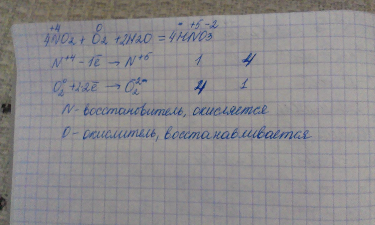 NO2+O2+H2O=HNO3 Уровнять припомощи электронного баланса, СЕГОДНЯ НАДО!! указать окислитель и восстановитель