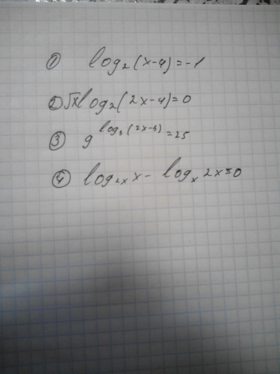 log₂(x-4)=-1 ОДЗ: x-4>0 x>4