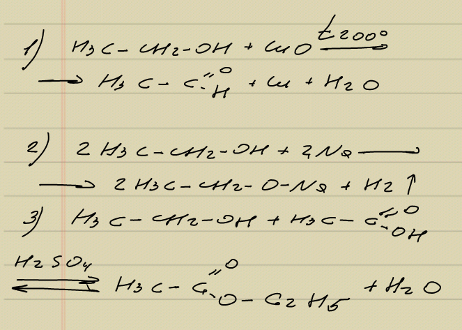 1)C2H6O-->(минус) -H2 под действием(CuO)
