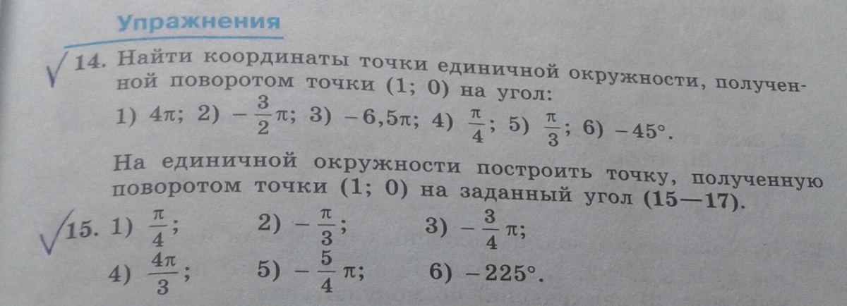 1) x = cos(4pi) = 1, y = sin(4pi) = 0; (1; 0)