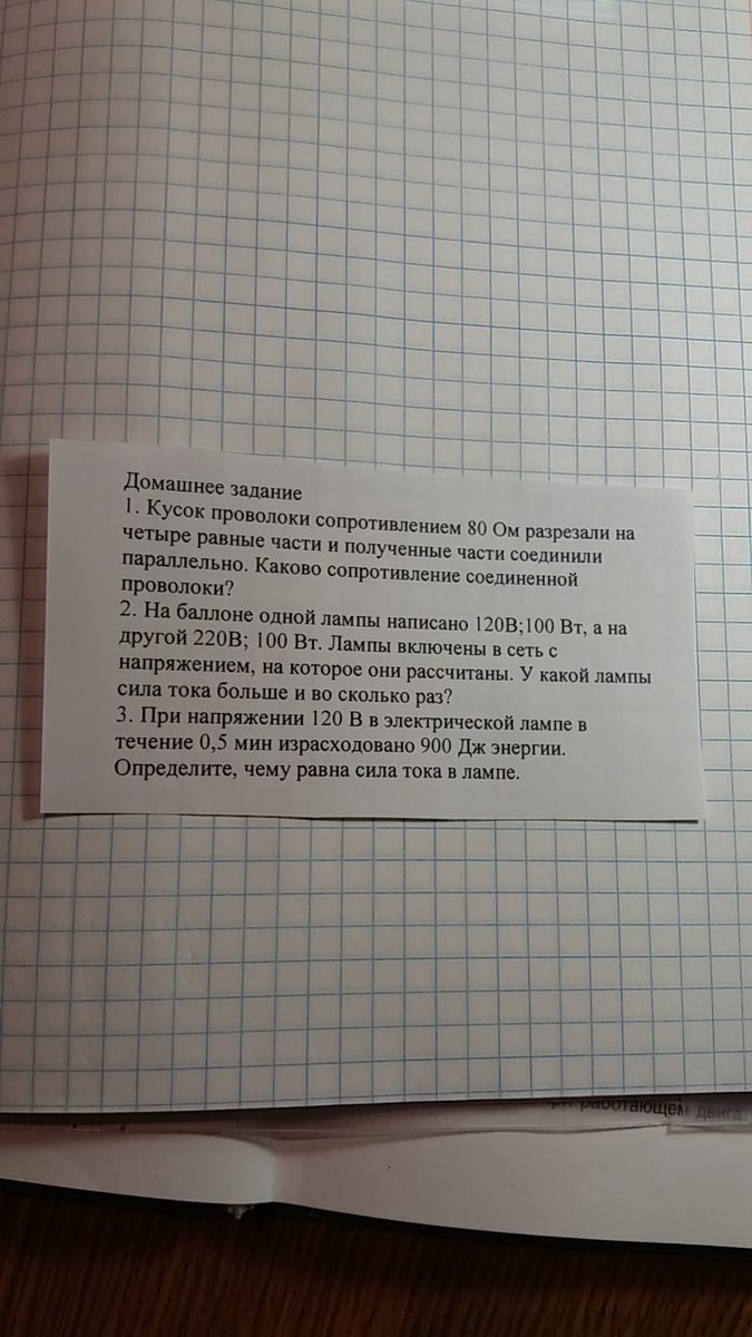 3. работа в Дж выражена через: W=U*I*t 900=120*I*30c откуда