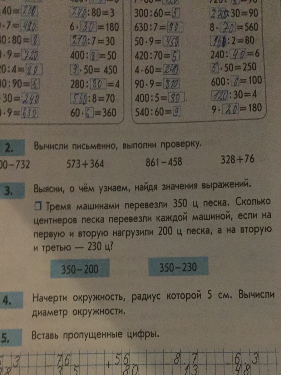 350-230 найдем сколько ц песка перевезли первой машиной