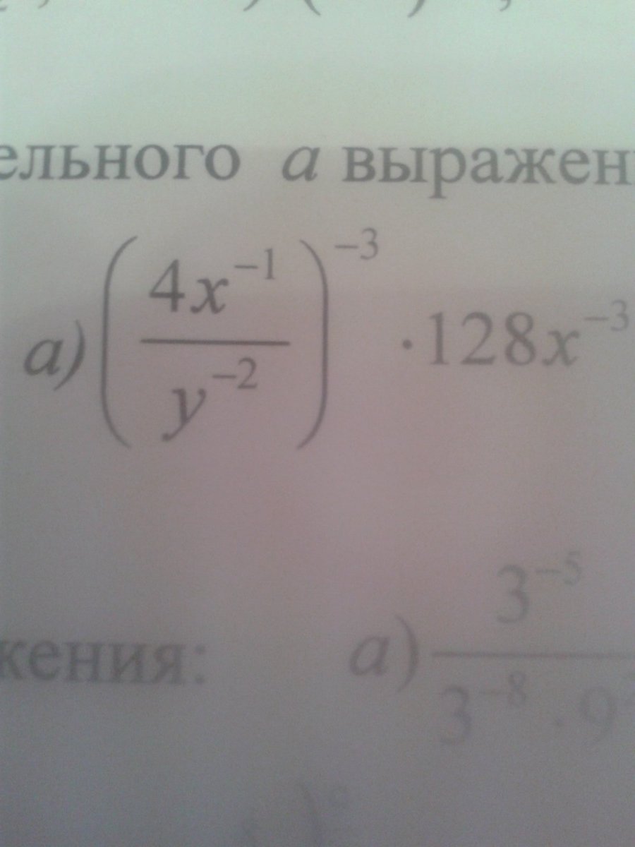 (frac{4x^{-1}}{y^{-2}})^{-3}= (frac{ frac{4}{x} }{ frac{1}{y^2}})^{-3}= (frac{ frac{1}{y^2}}{ frac{4}{x}})^{3}= (frac{1}{y^2}cdot  frac{x}{4})^3= (frac{x}{4y^2})^3= frac{x^3}{64y^6}