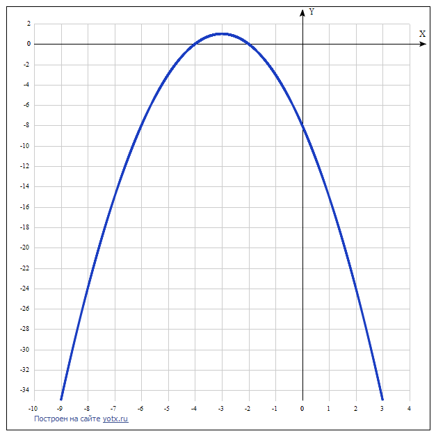 Графическое решение заданного уравнения можно проверить аналитически: -x² - 6x - 8 = 0.Квадратное уравнение, решаем относительно x: