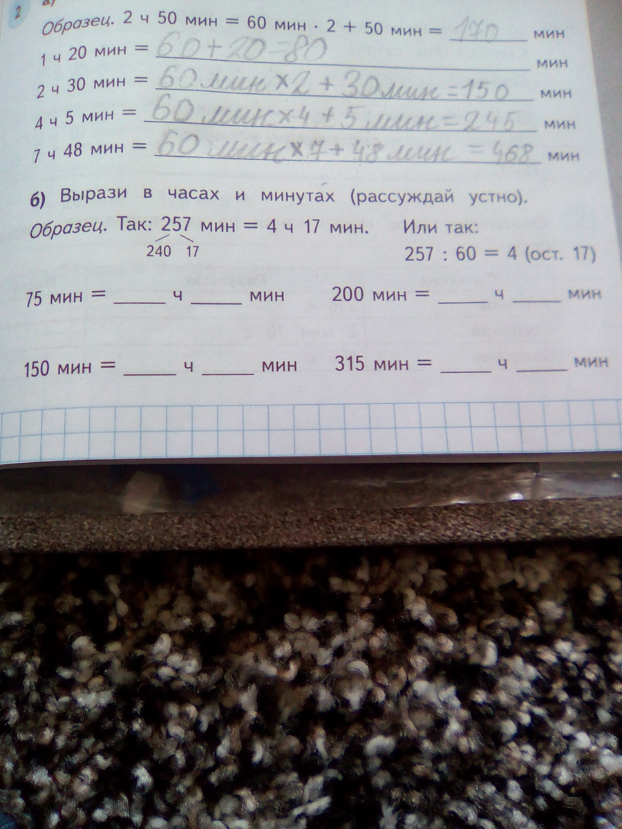 75= 1ч 15м 150= 2ч 30 м 200=3ч 20м 315= 5ч 15м