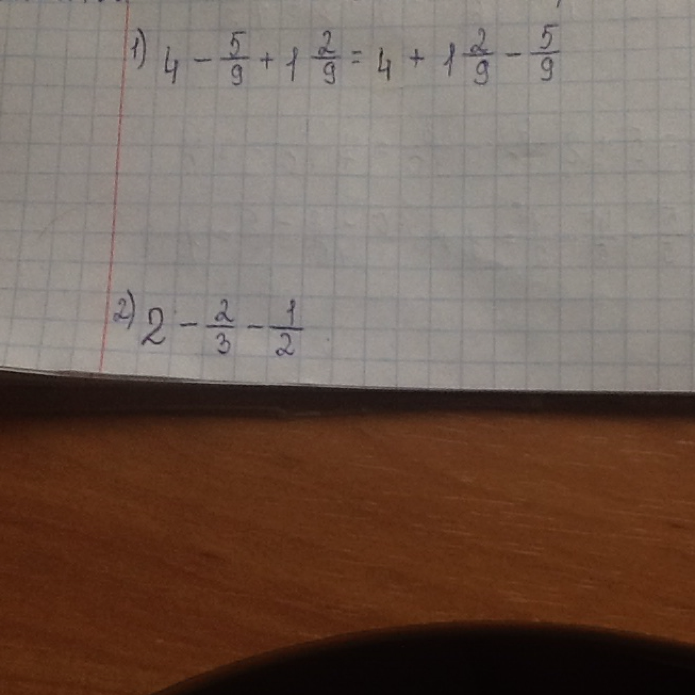 1)4-5/9+1 2/9=3 7/9 2)2-2/3-1/2 =находим общий згаменатель 6 тоесть получается 4-3/6=1/6=6