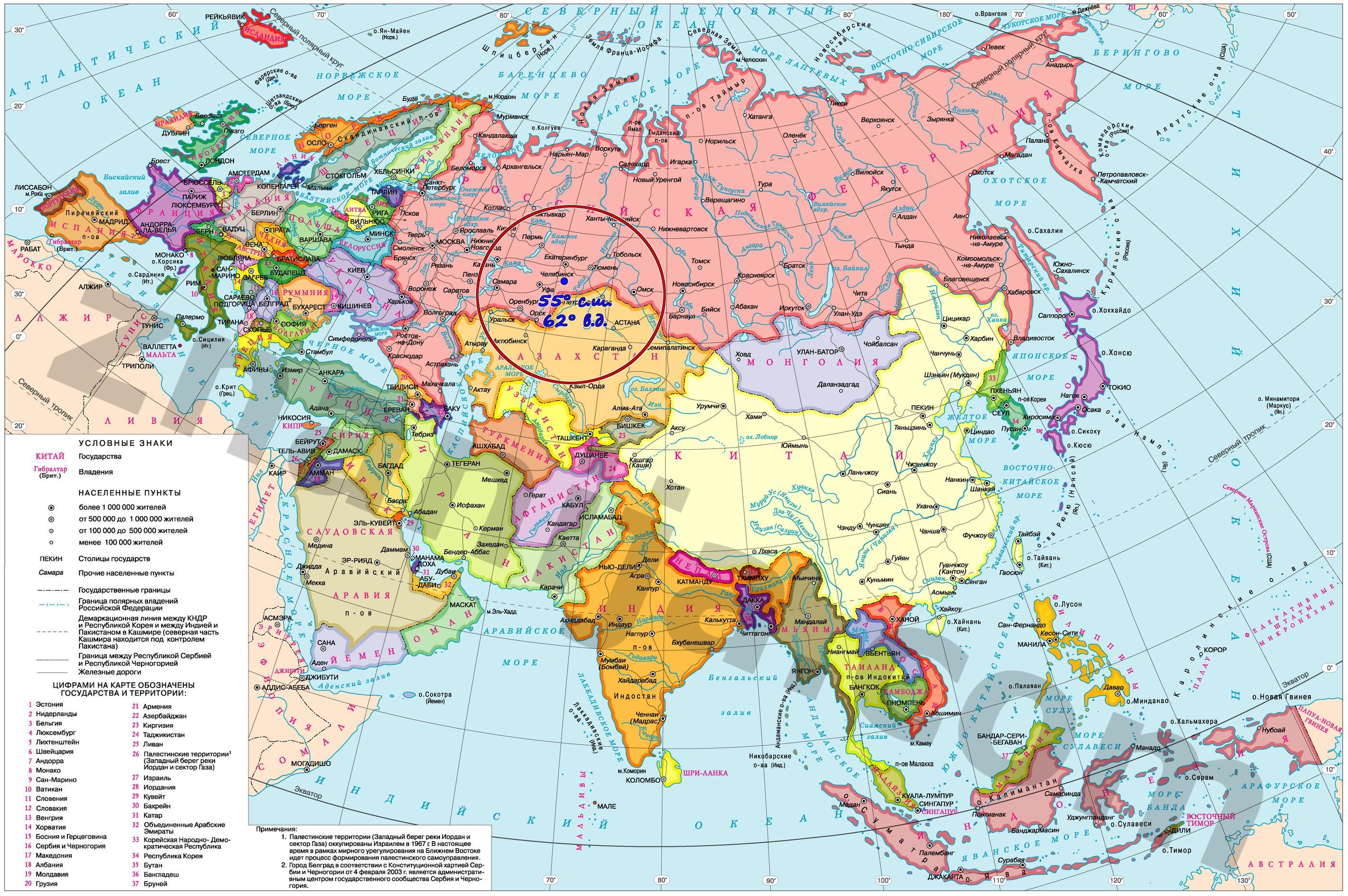 Координаты 55° с.ш. 62° в.д. - город-миллионер Челябинск.
