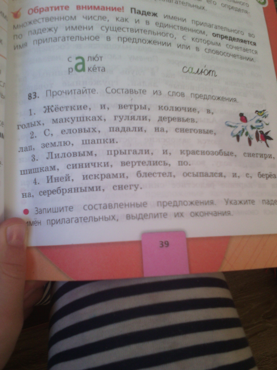 3.Синички и краснозобые снегири прыгали и вертелись по еловым шишкам.