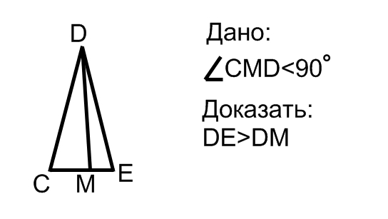 рассмотрим треугольник DME он прямоугольный ,угол DME=90 гр по условию. DE>DM т.к. DE-гипотенуза