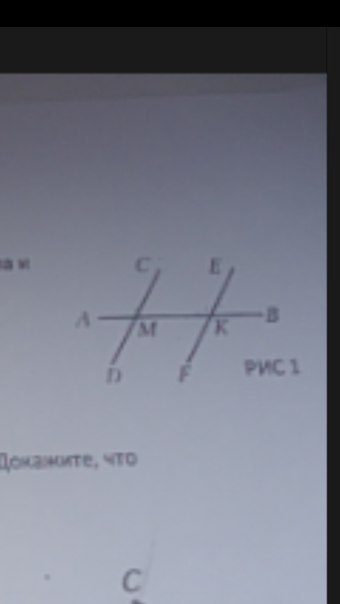 при параллельных DC и FE и секущей AB углы DMK,MKE и CMK, MKF - накрест лежащие; углы AMC,MKE, углы AMD,MKF, углы CMK, EKB, углы DMK,FKB - соответственные; углы CMK, MKE, углы DMK,MKF - внутренние односторонние.