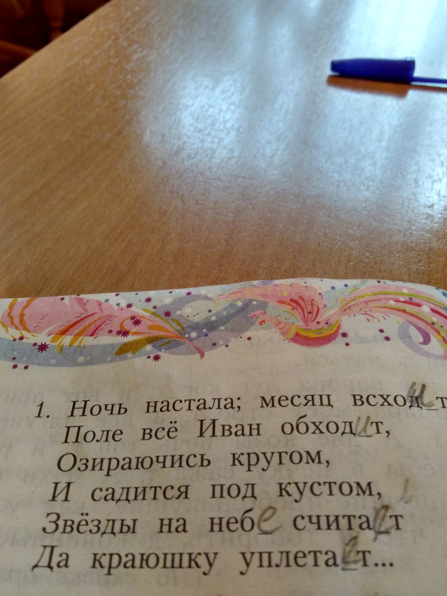 ночь - подлежащее(одной чертой) настала - сказуемое(двумя чертами), месяц (одной) всходит(двумя), Иван(одной) обходит(двумя),садится( двумя), считает (двумя) ,уплетает(двумя)