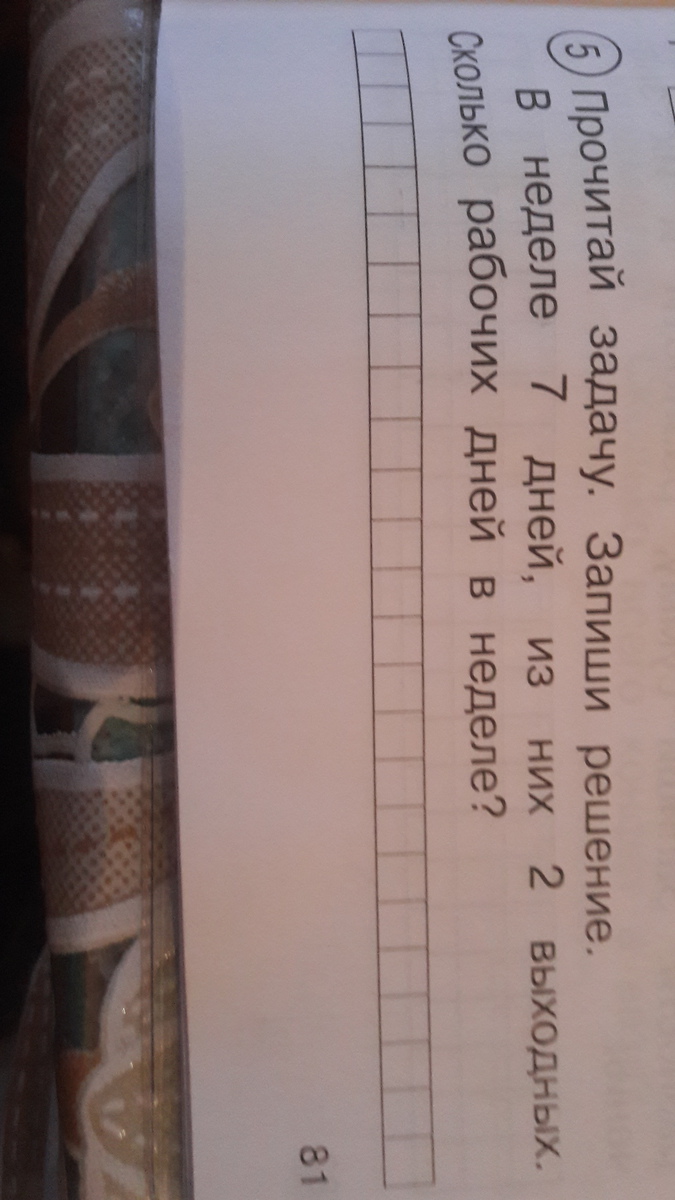 Прочитай задачу. Запиши решение .В неделе 7 дней из них 2 выходных. сколько рабочих дней в неделе?