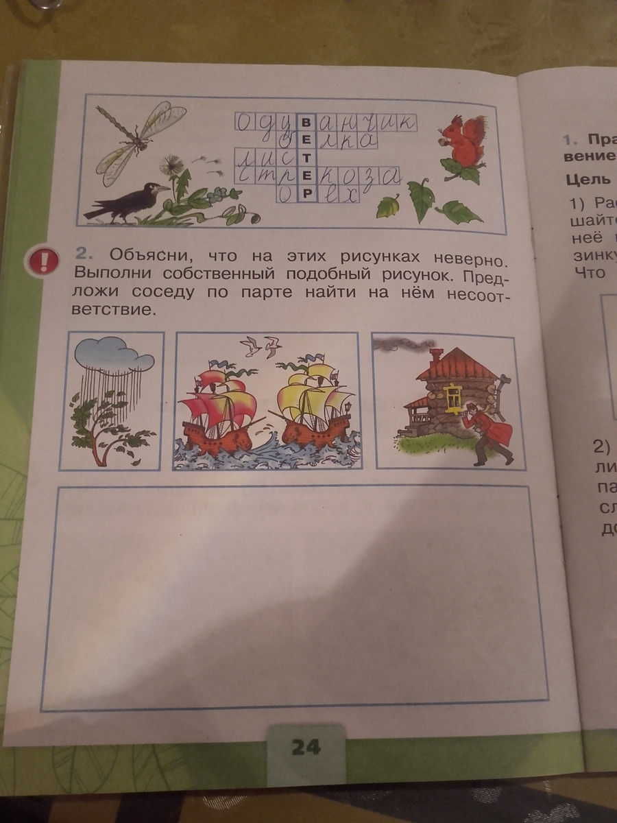 ветер дует в разные стороны (на 1: дождь идет прямо, а дерево наклонено, на 2 паруса направлены в разные стороны, на 3: человеку дует в спину, а он закрывается спереди)