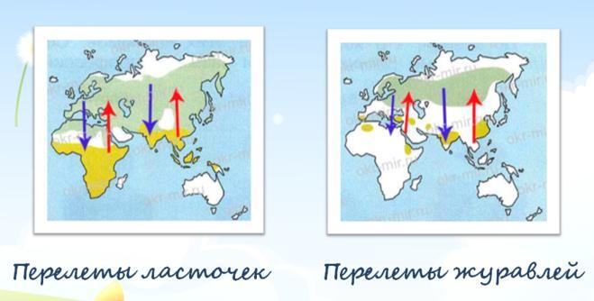 Обозначить синими стрелками направление осенних перелетов ласточек и журавлей, красными стрелками обозначить направление весенних перелетов окружающий мир 1 класс рабочая тетрадь стр. 14-15 Плешаков , помогите пожалуйста с решением.