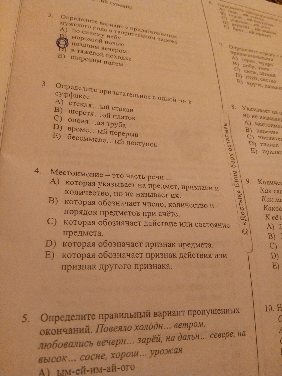 4.Местоиме́ние — часть речи, которая указывает на предметы, признаки, количество, но не называет их(ответ А)