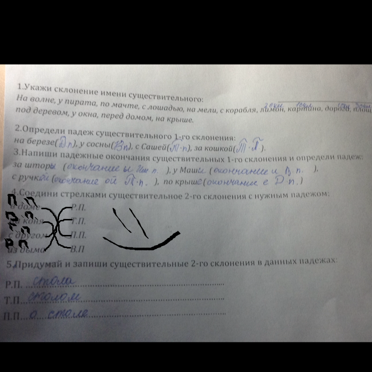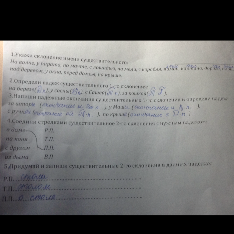 В доме-П.п;на коня-В.п;с другом-Т.п;из дыма-Р.п.