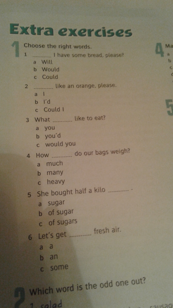 первое ( would ) второе (i) третье (youd) четвёртое (many) пятое (of sugars) шестое (a)
