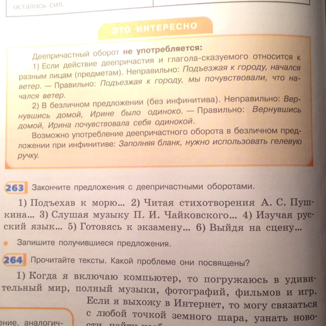 1)Подъехав к морю, я ощутила невероятное чувство. 2) Читая стихотворения А С Пушкина, я представляю каждую строчку. 3) ..., мне хочется попасть в сказку. 4)..., я становлюсь более грамотней. 5)...,нельзя забыть о концентрации. 6) ..., я чувствую себя уверенно.