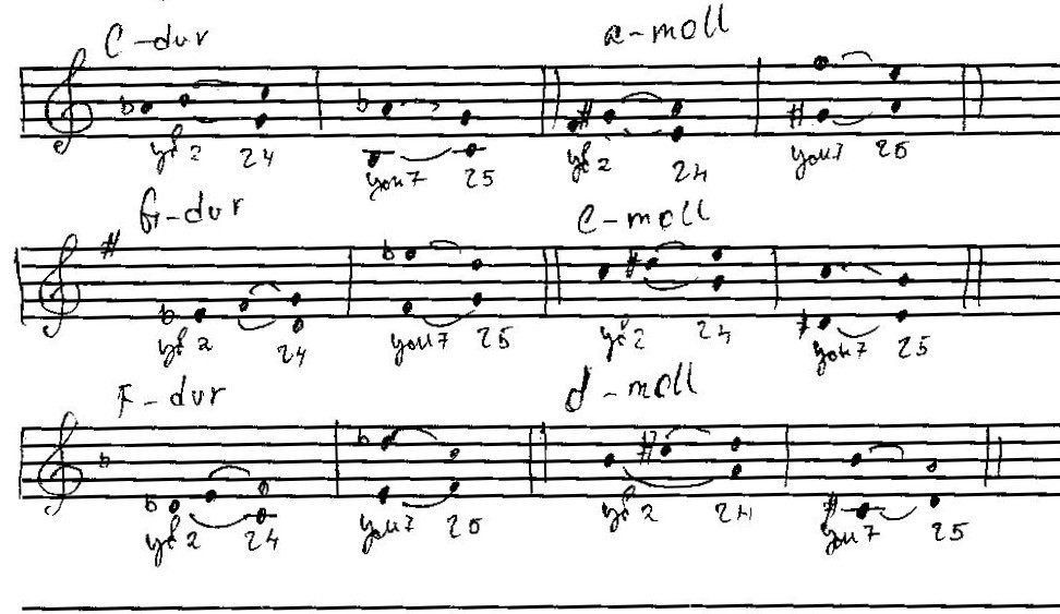 постройте ум.7 и ув.2 с попевками в тональностях до мажор, ля минор, соль мажор, ми минор, фа мажор, ре минор