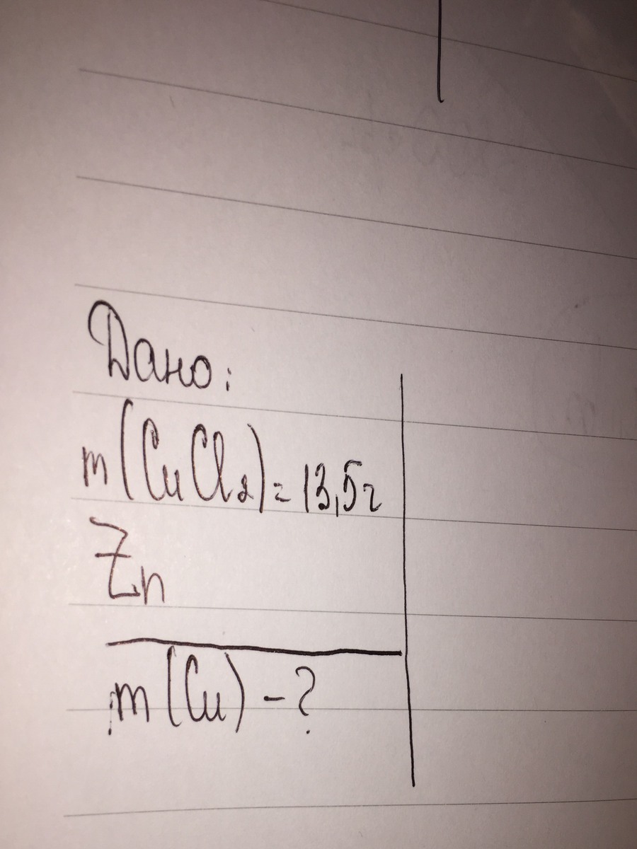 Считаем молярную массу CuCl2 = 64+35,5*2= 135, далее молярную массу меди = 64. Составляем пропорцию: 13,5* 64/135 = 6,4 грамма