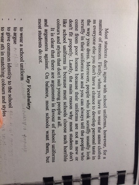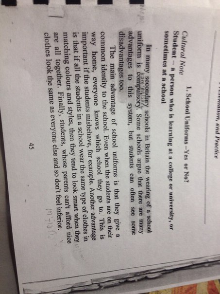 Во многих британских школах ношение школьной формы - обязательная часть. Некоторые школы спорят по поводу того, что в этой системе есть плюсы, но студенты также видят в этом и минусы. Польза ношении формы заключается в том, что она дает общую идентичность. Поэтому даже когда ученики идут домой, все знают из какой они школы. Например, это помогает в ученической дисциплине. Другой плюс школьной формы в том, что, если все ученики школы носят один вид формы, которая сочетается по цвету и стилю, то, когда они собираются все вместе, то выглядят умнее. И наконец, ученики, у которых родители не могут позволить покупку красивой одежды, не чувствуют себя обделенными, когда выглядят, как все остальные.