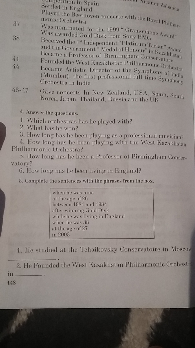 1 С какими оркестрами он играл? (the Royal Philharmonic Orchestra, the West Kazakhstan Philharmonic Orchestra, the Symphony Orchestra in India)
