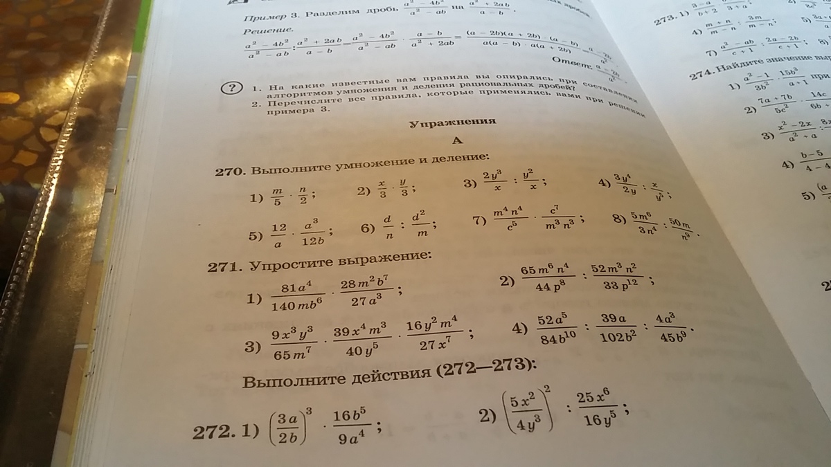 frac{9x^3y^3}{65m^7}cdot  frac{39x^4m^3}{40y^5}cdot  frac{16y^2m^4}{27x^7}=  frac{9x^3y^3cdot39x^4m^3cdot 16y^2m^4}{65m^7cdot 40y^5 cdot27x^7}=  frac{9cdot39cdot16 m^7y^7x^7}{65cdot40cdot27m^7y^7x^7}= frac{52}{650}= frac{2}{25}