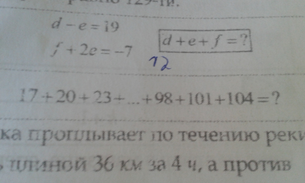 может так 17+20+23=60 а 98+101+104=303 а 303+60=363 значит пусть ответ 400 это 17+20+23+37+98+101+104=400 я не уверен но может так