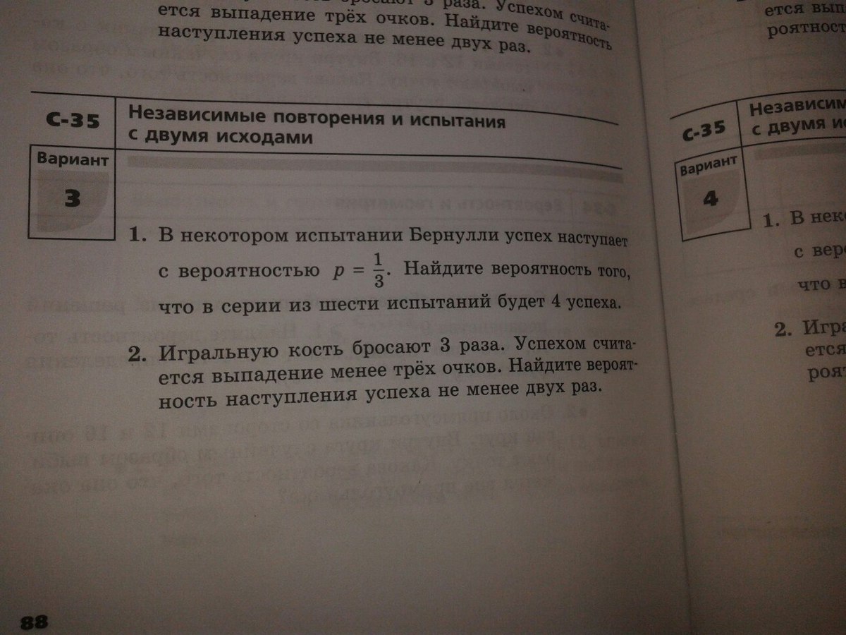 игральную кость бросают 3 раза успехом считается выпадение менее трёх очков найдите вероятность наступления успеха не менее двух раз