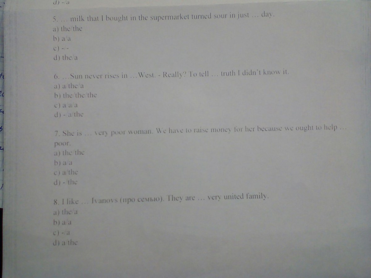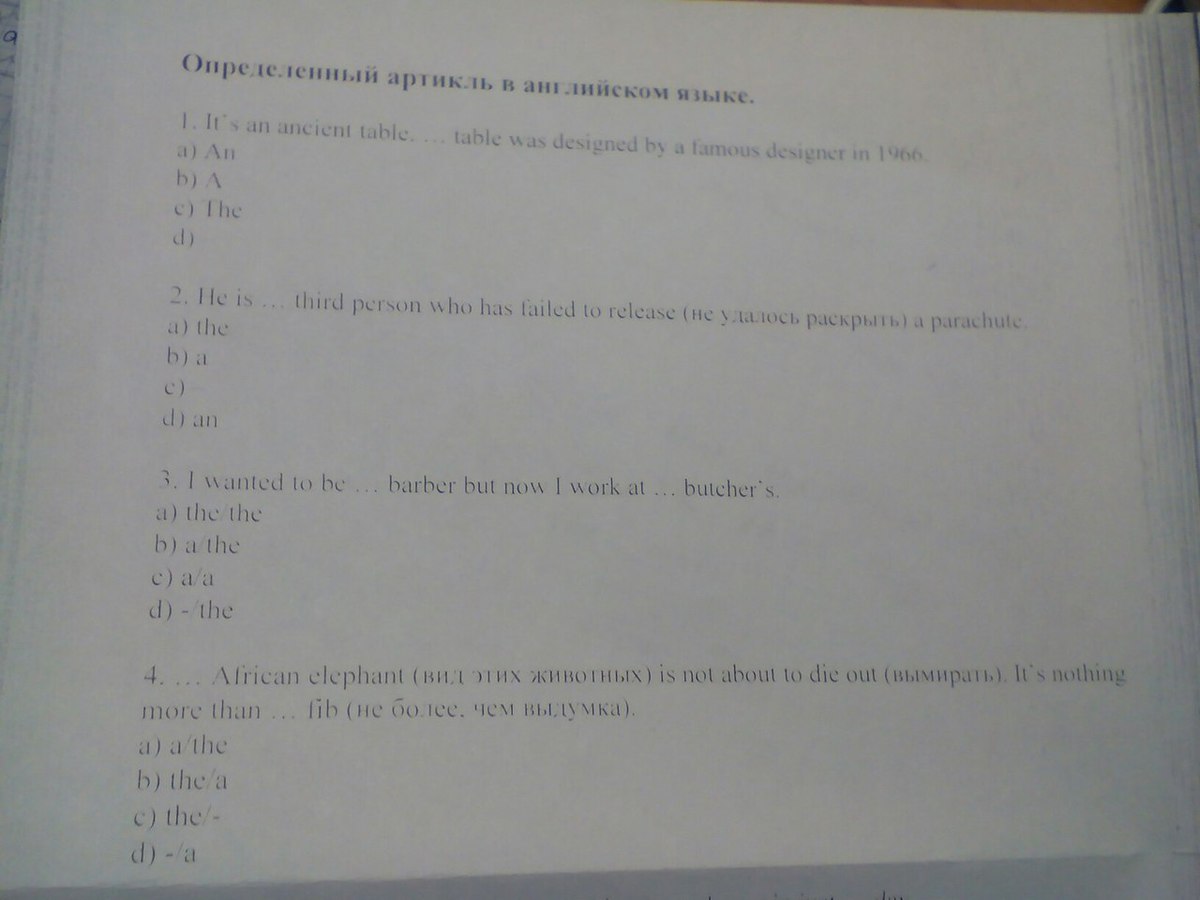 Помогите сделать Английский язык. Определённые артикли!! СРОЧНО надо!!))) Буду БЛАГОДАРНА!!))