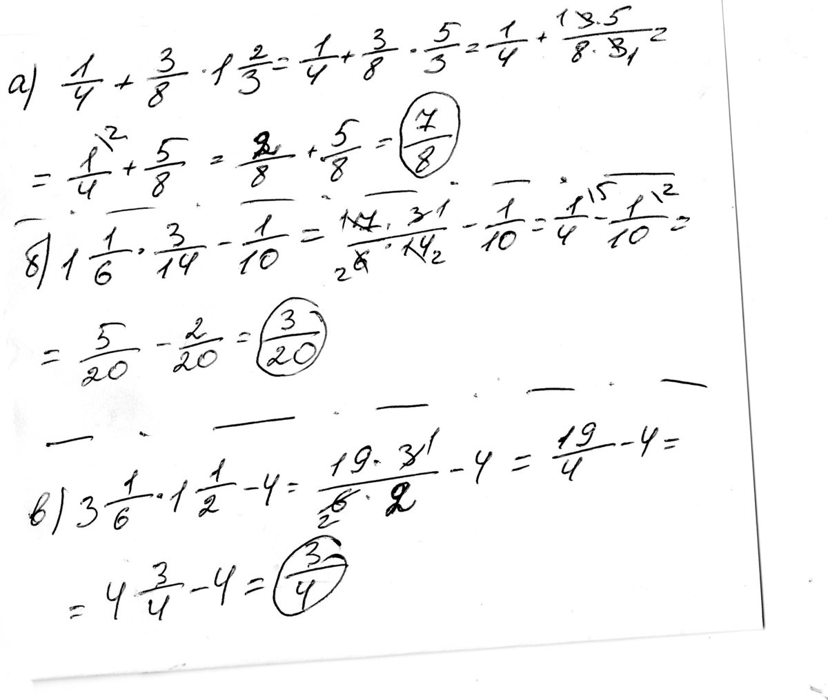 в) 3 1/6*1 1/2-4=19/6*3/2-4=4 3/4-4=3/4