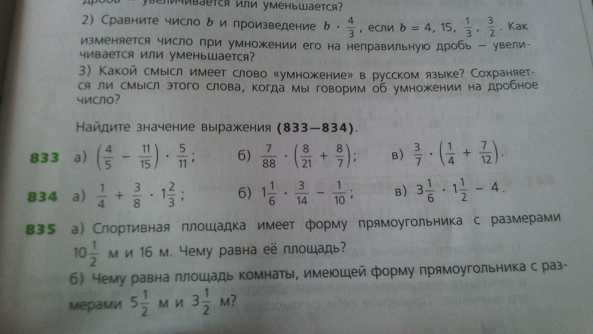 3 примера!! 834 пожалуйста помогите) с решением!!! точнее только решение. Ответы а) 7/8 ;б) 3/20 ;в) 3/4. ответы были в учебнике.