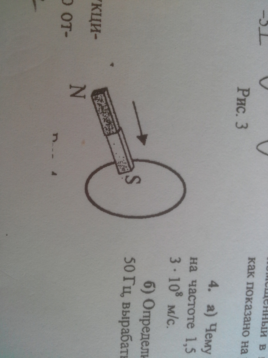1.к сплошному кольцу приближают магнит южным полюсом так, как показ на рис.будет ли в кольце возникать индукционный ток? ответ ОБОСНУЙТЕ 2.определить по этому рисунку направление индукционного тока в кольце, еслт оно отталкивается от магнита