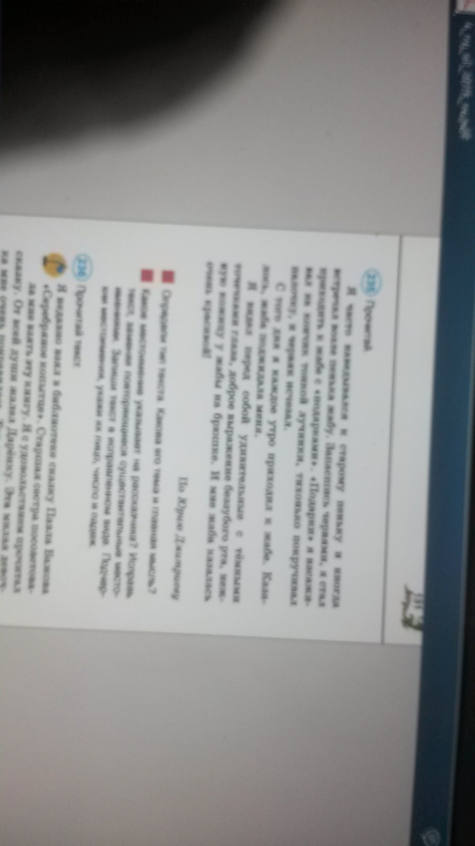 Текст - повествование. Главная мысль - возможно, отношение человека и природы. (первое предложение второго задания не видно, напиши в комментарии что там написано, и я отвечу).