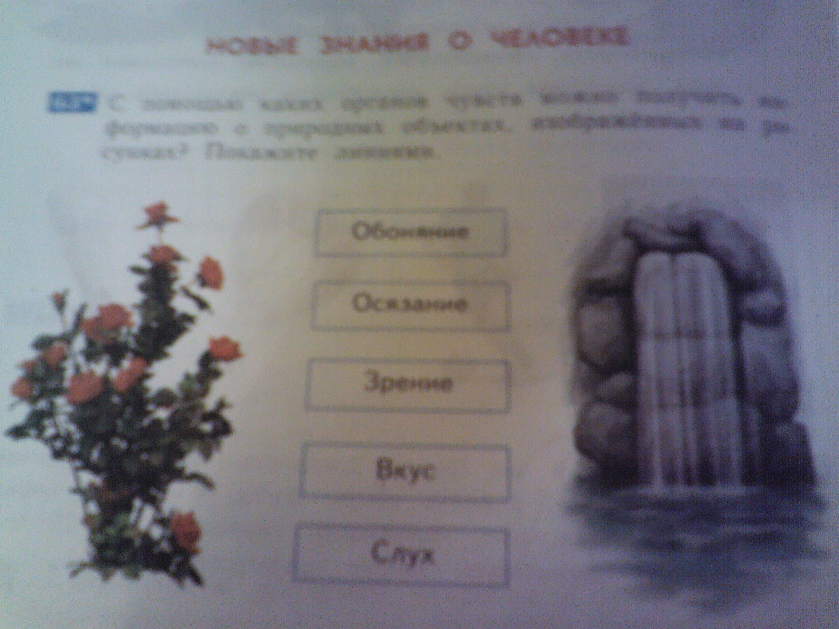 водопад: обоняние( не уверена, но по логике можно почувствовать запах влаги), осязание, зрение, вкус, слух