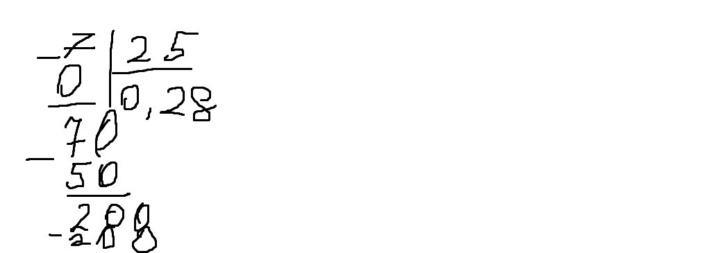 7:25=0.28 вот в столбик, извини за качество, если что внизу нули