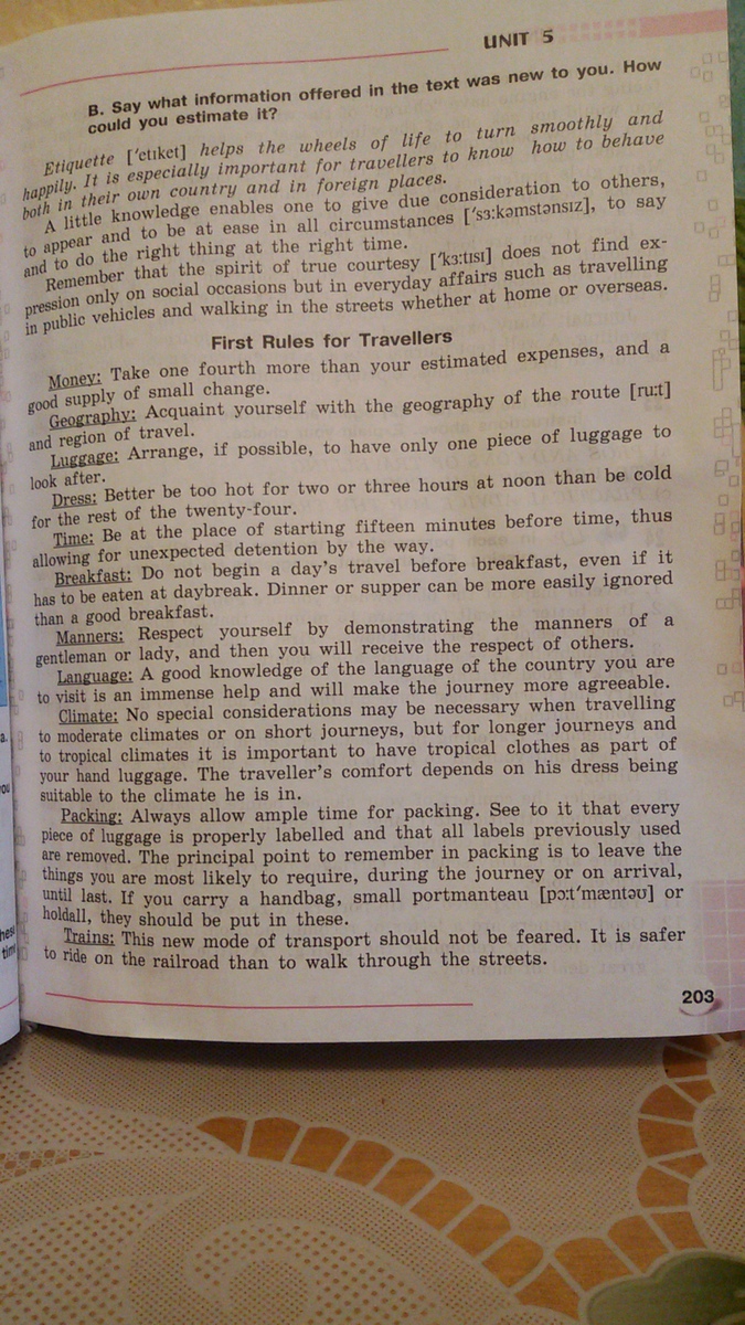Первые правила путешественников на одну четверть больше, чем ваши сметы затрат, а также хороший запас небольшого изменения. маршрута Inutl себя с географии d области путешествий, если это возможно, чтобы иметь только один багаж кусок после быть часов в полдень, чем быть холодно Dness: Лучше слишком жарко или три остальные двадцать четыре тора быть в место, начиная за пятнадцать минут до времени, таким образом, ulowing для неожиданного задержания пути. Завтрак: Не начинайте путешествие один день перед завтраком, даже если он должен быть съеден рассвет. Обед или ужин можно более легко игнорировать, чем хороший завтрак. Поведение: Уважайте себя, демонстрируя манеры джентльмена или леди, и тогда вы получите уважение других, язык интерфейса: хорошее знание языка страны, которую вы должны посетить это огромная помощь и сделает путешествие моро приятным , Chaiate: Никаких специальных соображения не могут быть необходимы при путешествии в oderate климате или на коротких поездок, но и для длительных путешествий и тропического климата, важно иметь тропические одежды как часть вашего Baad багажа. Комфортный путешественника зависит от его способности платье к cliniate он II IU. Packiag: Всегда разрешать достаточно времени для упаковки, следить за тем, что каждый Tirce багажа правильно маркированы и что все метки г в упаковке LIS покинуть mmoved. Основной пункт REME Juu SRE, скорее всего, потребуется, во время journoy или по прибытии Лаут. Если вы носите сумку, маленький портманто м enroul л, они ehould быть помещены в эти Nis вида транспорта не следует опасаться, безопаснее на железной дороге, чем через улицу