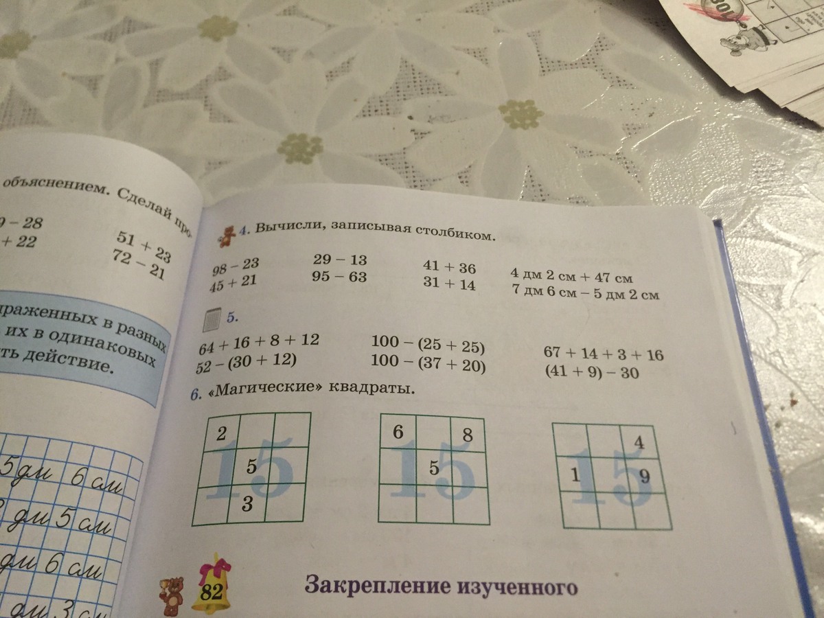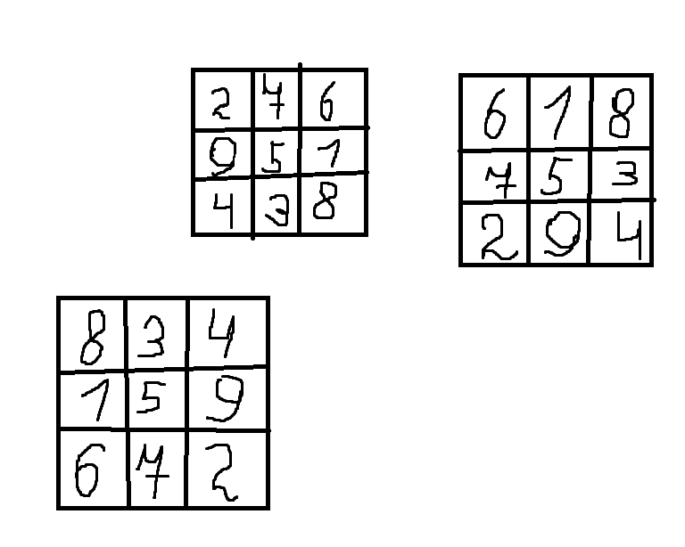Надо в пустые клеточки поставить числа так, чтобы по вертикали, горизонтали и диагонали получилось 15. (Если у вас не получиться решить задачу обращайтесь в коментариях!)