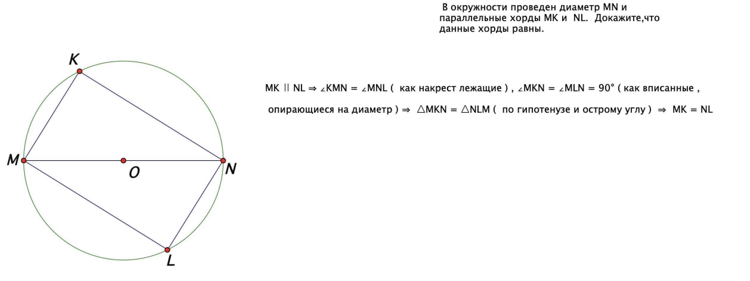 Помогите плиз. В окружности проведен диаметр MN и параллельные хорды MK и NL.Докажите,что данные хорды равны.