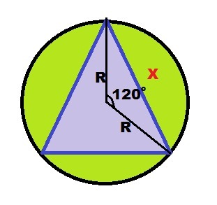 2) Площадь трех равных сегментов = площадь круга - площадь вписанного треугольника