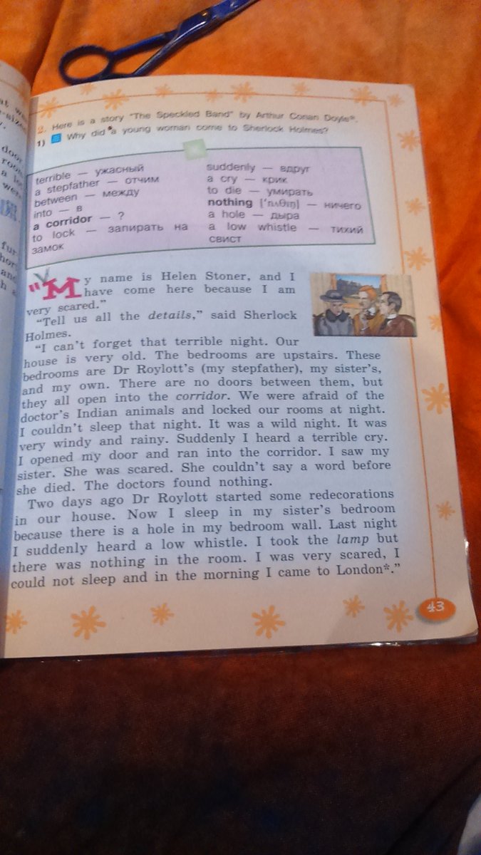 Через 2 дня после этого доктор Роялотт начал перепланировку нашего дома. Сейчас я сплю в комнате моей сестры потому что здесь есть дырка в мою спальню. В последнюю ночь я услышала низкий свист. Я взяла лампу, но ничего не было в комнате. Я была очень напугана, ч не спала и утром. Я пришла в Лондон.