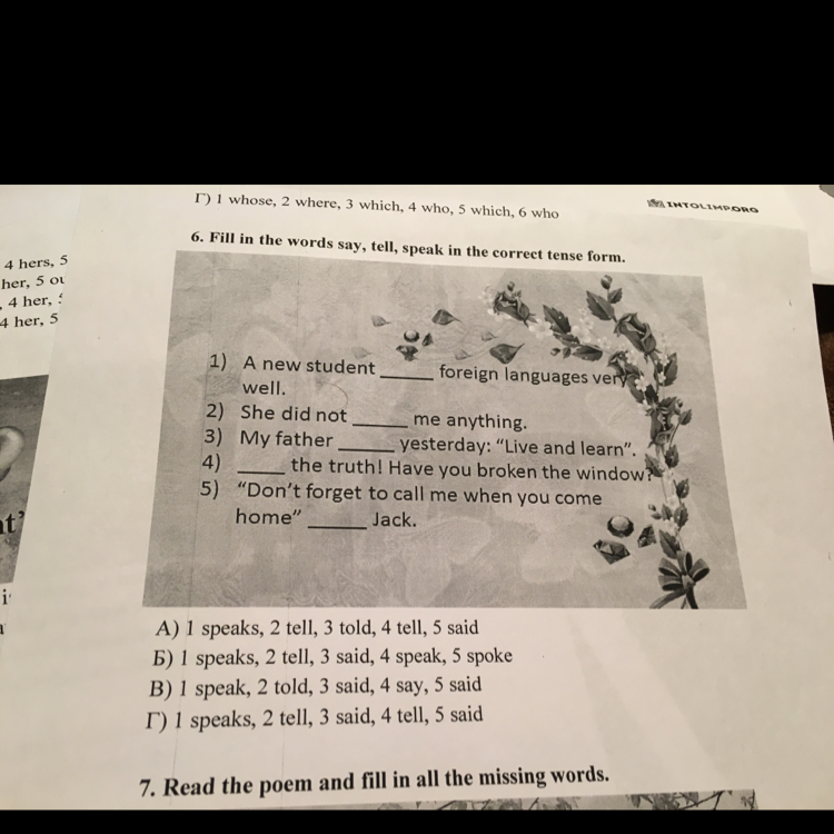 A 1 speaks,2 tell,3 told,4tell,5 said