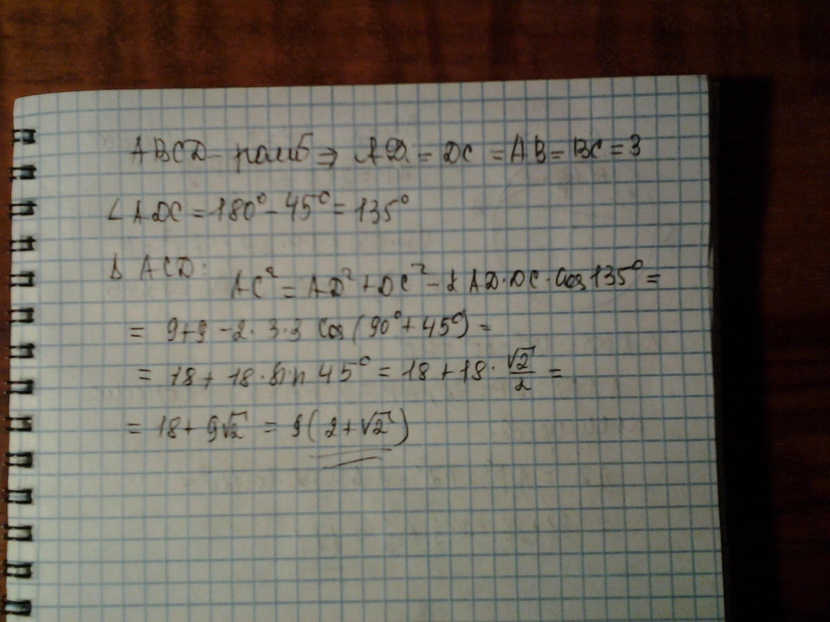 Применена теорема косинусов, смежные углы