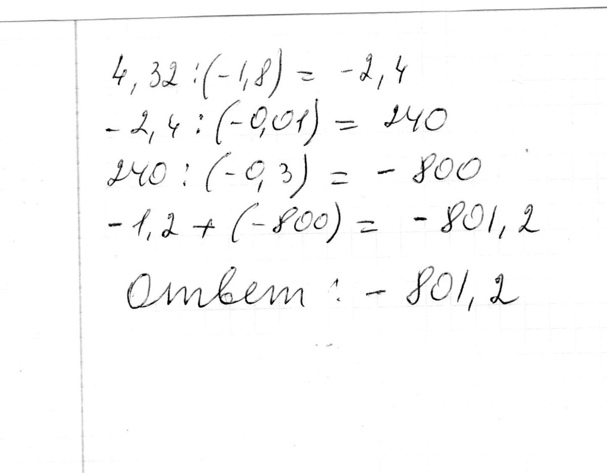 ( - 1.2.+ 4.32 : ( - 1.8 ) : ( - 0.01 ) : ( - 0.3 )= плиз дам 100 баллы 6 класс деление рациолальных чисел