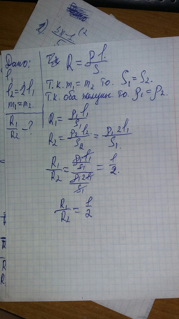 имеют одинаковую массу .Чему равно отношение сопротивления первого проводника к сопротивлению второго?