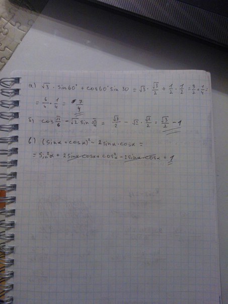 a) = √3·√3/2 + 1/2 · 1/2 = 3/2 + 1/4 = 1,5 + 0,25 = 1,75.