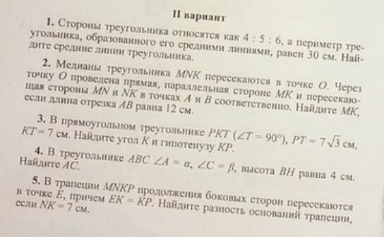 точка (О)- пересечение медиан => она делит медианы 1:2