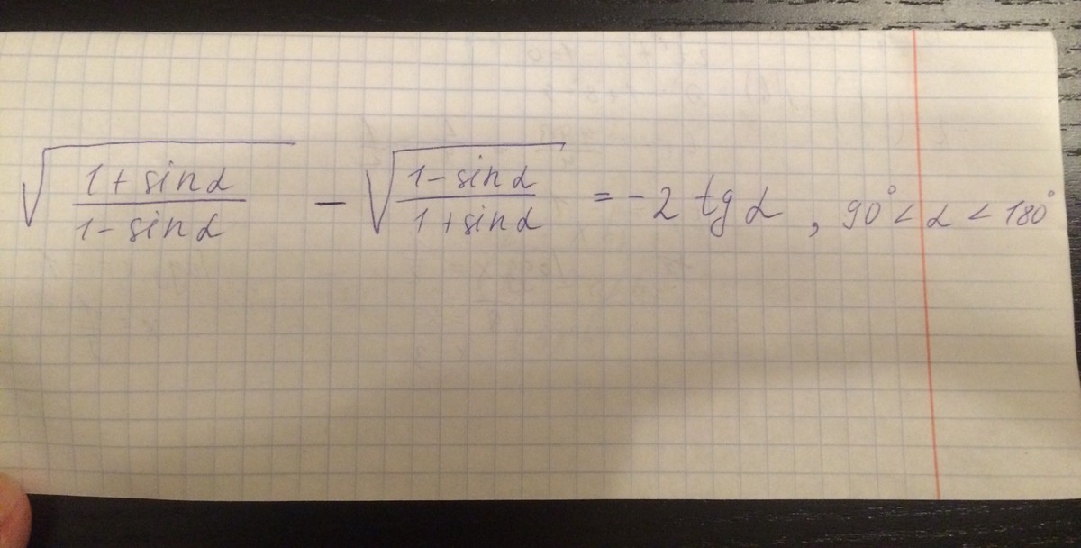 √(1+sinα)/(1-sinα) - √(1+sinα)/(1-sinα) = -2tqα ,90°<α<180°.