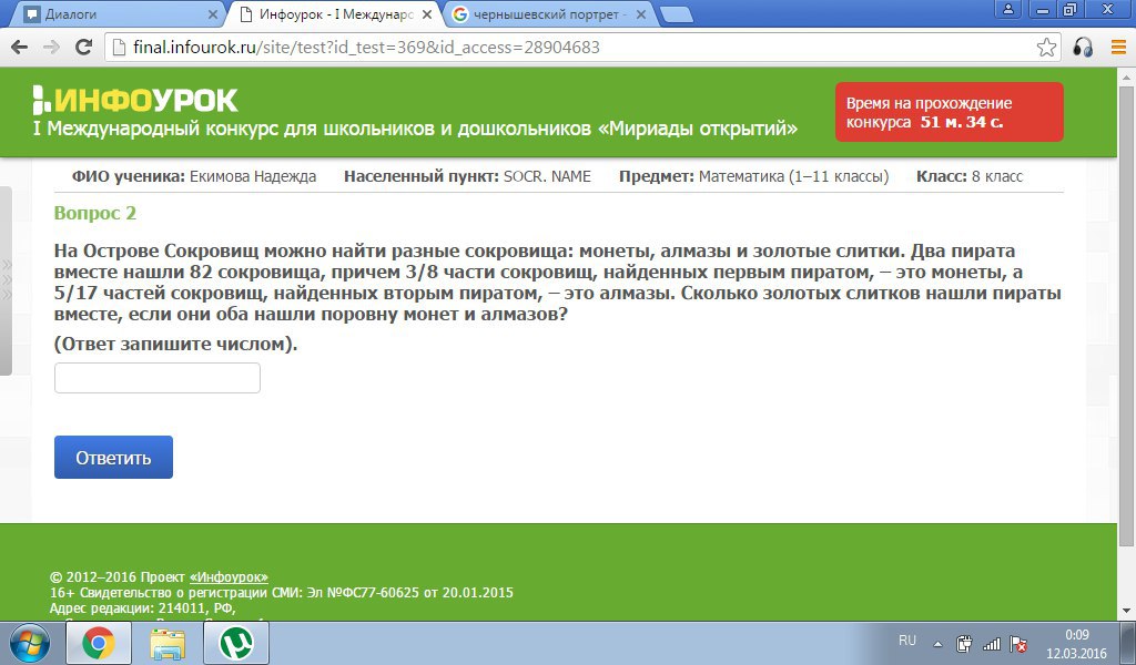 82 - 56 = 26. Мы решили задачу правильно (пусть и пришлось немного подобрать число сокровищ).
