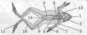4. Укажіть, якими цифрами на рисунку позначені частини скелета жаби.(Во вложениях)